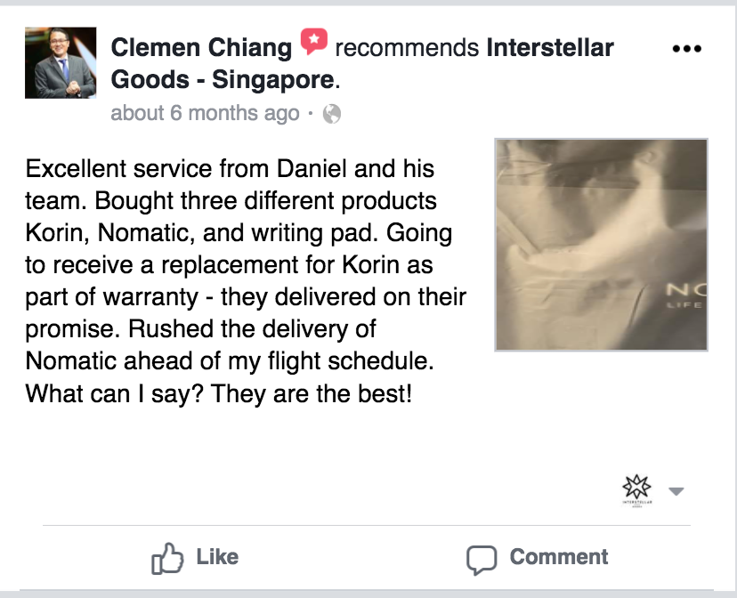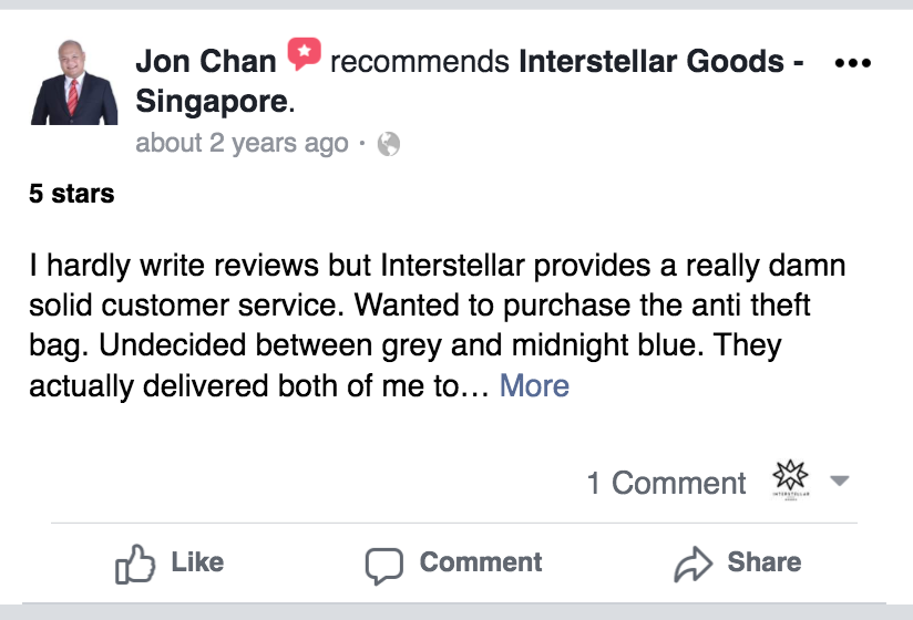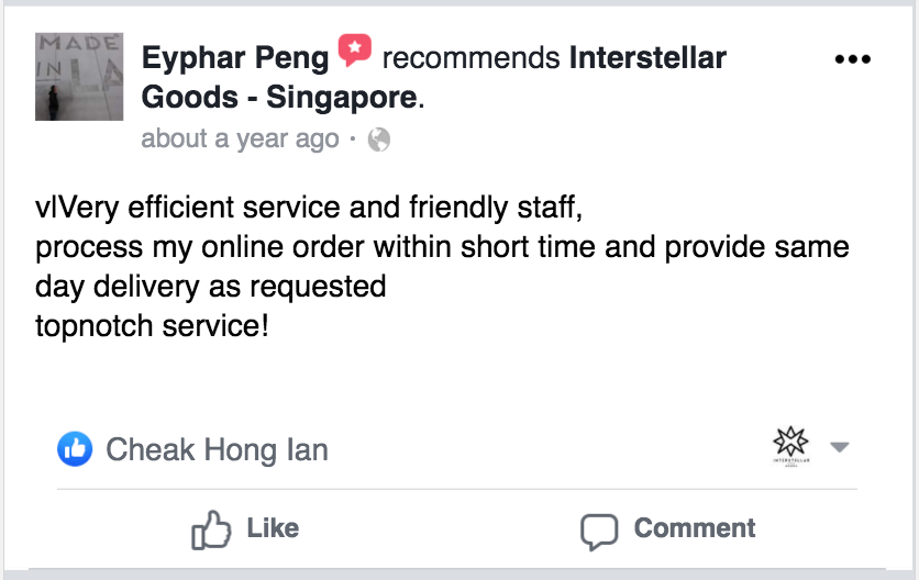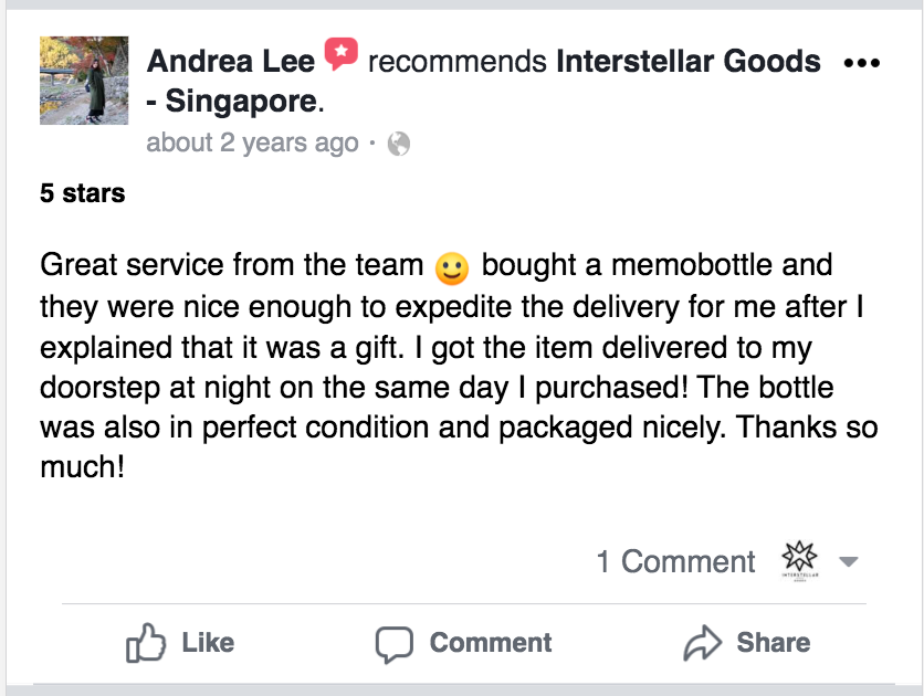 Free deliveryWe know how much you hate to pay for delivery. At Interstellar Goods, delivery across Singapore is always free no matter your order size. And we send it right to your doorstep. Our team works tirelessly to ensure 90% of our shipments reach customers within 2 working days. We also include a free re-delivery should you have a sudden change of plans. |