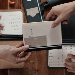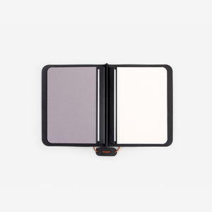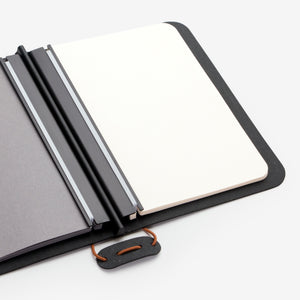 The entire system starts with the Book Binder, built from high-quality aluminium alloy and magnetically attached to the spine on the book cover. Paper sheets are held together across two notches by a silicon band. Within seconds, you can slide the pages you require in and out of the binder, with the rest still secure within. Watch the videos on the right to see how it works!