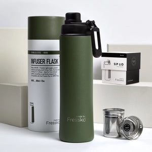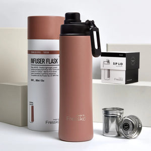 So much more than a water bottle or regular tea thermos. Fressko's stainless steel range allows you to enjoy ice-cold smoothies, fruit waters or freshly brewed hot tea, all from the one handy infuser thermos. Lightweight, insulated and durable.