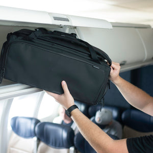 It fits in airline's overhead compartments and also under your seat.