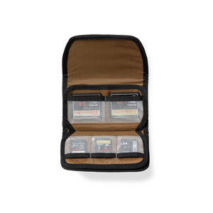 Safely store as many as 6 SD cards and 2 c-fast cards in separate pockets.