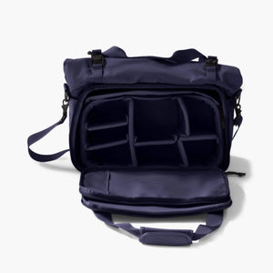This camera bag has two compartments separated by an internal zip-away divider. The lower compartment houses the removable camera cube and is accessed via the large front opening. The camera cube with it's padded interior and 6 internal dividers will keep your equipment stowed safe and sound on your travels.