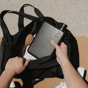 A slim, book-shaped water bottle stylishly designed to fit perfectly into your bag.