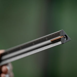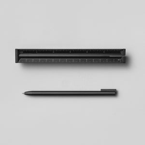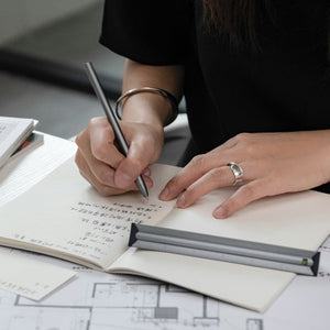 Inspired by the modern steel structures and leveraging the lightweight, compactness, and strength of aluminum alloys, this unique design of a triangular prism with a smoked bamboo latch serves as a penholder (with the magnetic force at work) and a ruler for horizontal measurements. One 3 is achieved with the one geometric shape in its utmost purity and the precisive integration of three professional functions. This pen ruler can accommodate requirements in different use cases, with an easy switch between six ratio scales through the reversal of the triangle, so that you can measure and express your ideas anytime.