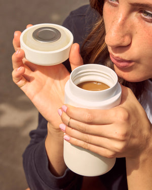 • Wide-mouth, smooth, and threadless ceramic lip has rounded edges to make on-the-go sipping feel like your favorite mug