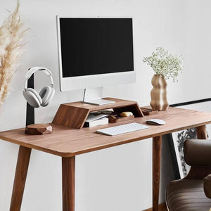 A wooden monitor stand made of solid walnut or oak wood raises your device by 3.6 in (9 cm) to an ergonomic working position at an eye-level. Oakywood wooden monitor stand allows you to structure & organize your desk - under the stand you can hide small items such as a keyboard or a mouse. A wooden monitor stand from Oakywood is a handmade, designer item - created in our workshop in Poland. We use natural materials, therefore each piece slightly differs in the grain and color of the wood.