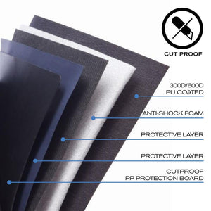 The Bobby Backpack contains a cut protection board embedded within the lining. Stops pickpockets!