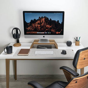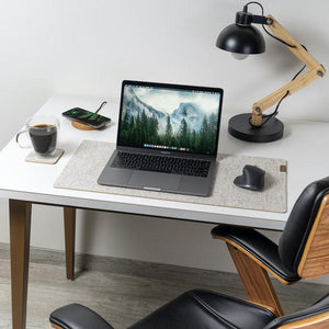 Oakywood felt desk pad is made of natural, fully biodegradable materials: 100 OEKO-TEX® Merino Wool Felt and ecological cork. The minimalist and universal design helps you to organize every kind of workspace with ease. A deliberate choice of premium materials makes the desk pad comfortable, soft, and durable. The cork base prevents the desk pad from shifting and thoroughly protects the desk.