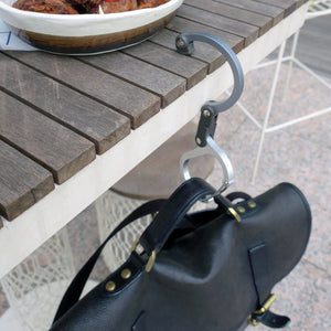 With the Heroclip, you can hang your bag on the table's edge, keeping it off the floor.