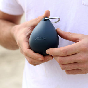 It packs into a silicone case that fits your palm, for ultimate portability. The Droplet XL also comes with an aluminium carabiner to clip to your bag, tether to your kayak, or pack it along on treks.