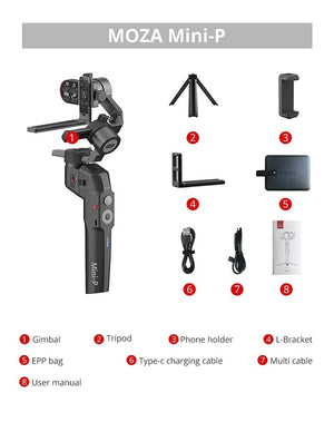 MOZA Mini-P is a cross-platform stabilizer compatible with multiple devices, such as smartphones, action cameras,compact cameras, and light mirrorless cameras, making it the perfect gimbal for traveling, adventuring, filmmaking, or just capturing everyday life.