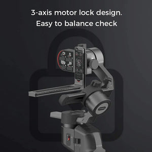 The enhanced camera control system allows your camera to be connected and controlled by the MOZA Mini-P. Use the controls built into the Mini-P’s handle to start recording a video or adjust camera settings. From your finger tips capture smooth and stable video with the Mini-P.
