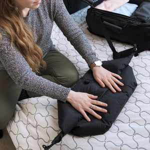 The Nomatic Vacuum Bag is the best solution for packing more. Its durable air & water tight tarpuline fabric makes it great to keep wet or dirty gear while traveling – 100% separate from the rest of your luggage. The unique Folding Seal and Turbo Air Valve allows you to get the air out simply by hugging or rolling it.