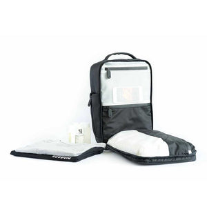 Its waterproof shower compartments protect your clothes and toiletries from getting wet.