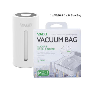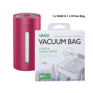 Vacuum-shrink your clothes with the extremely compact and portable Vago.